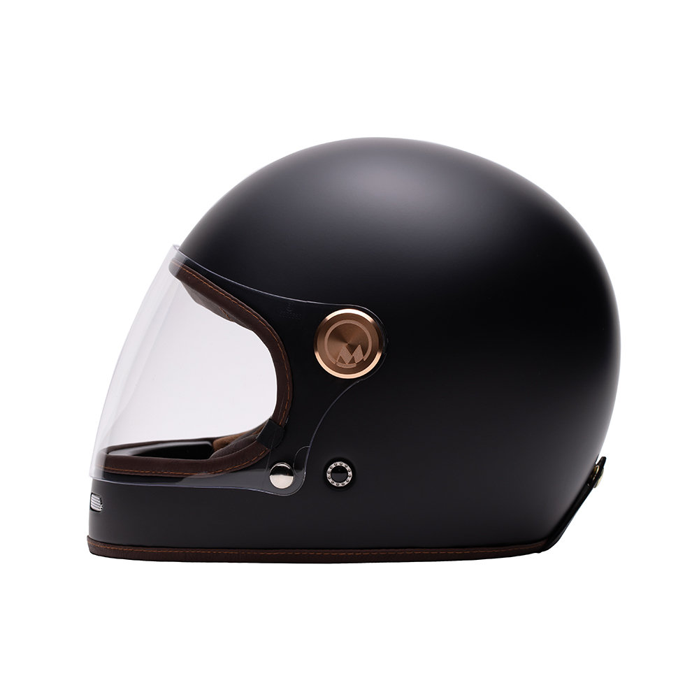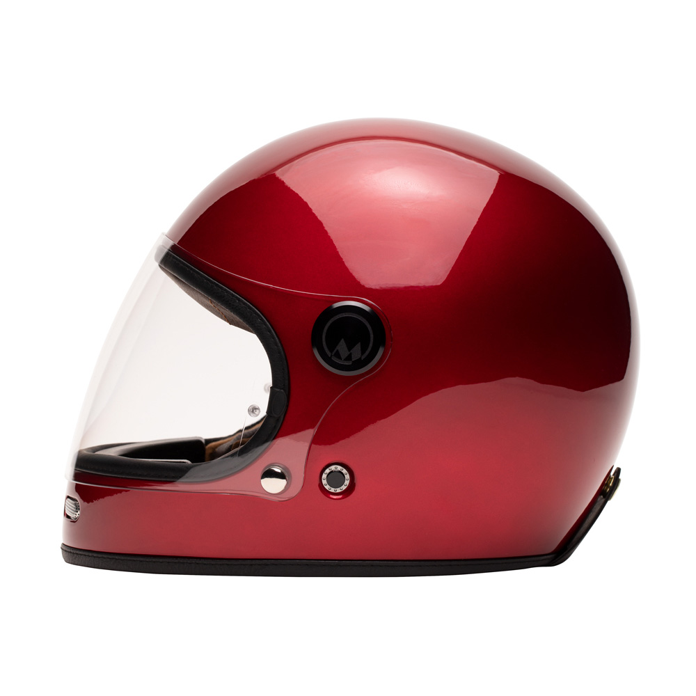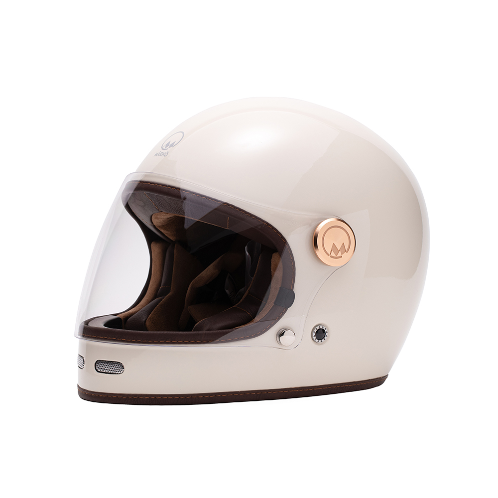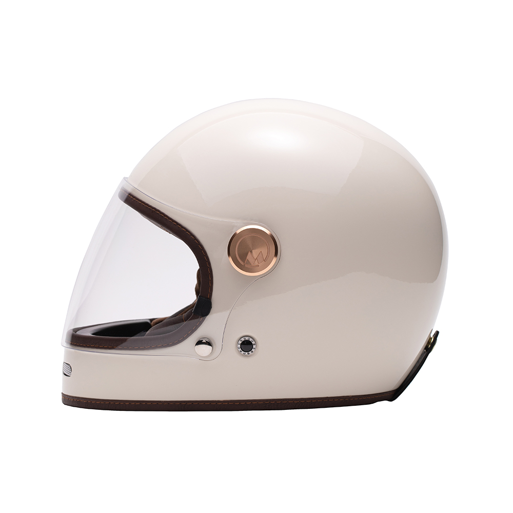 El casco Full Moon, inspirado en los cascos integrales de los años 60, está fabricado con una carcasa de fibra de vidrio y una mentonera fina y baja. Esta particularidad le permite tener un campo de visión muy amplio, característica apreciada por los usuarios de dos ruedas y particularmente para la conducción en ciudad.